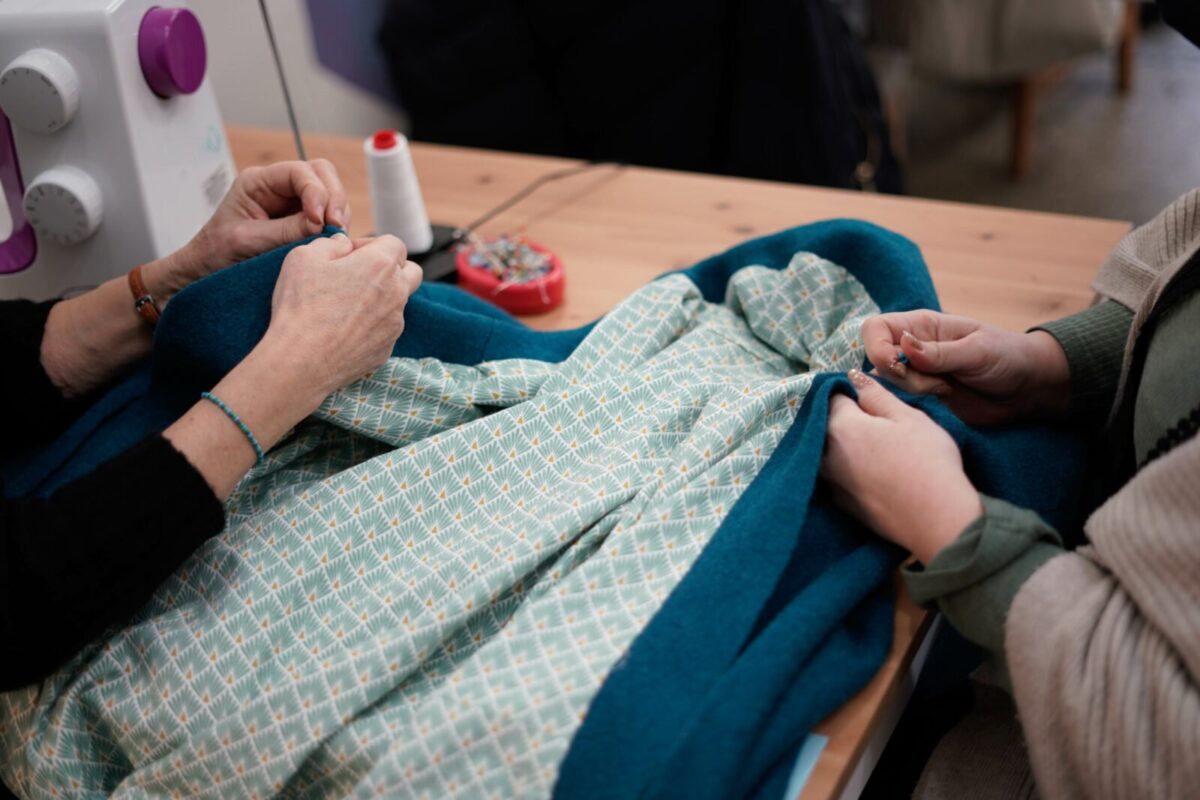 En mai, nous réaliserons un manteau doublé en tant que travail de fin d’année afin de mettre en pratique tous les exercices vus pendant l’année. La difficulté du manteau réside dans l’épaisseur plus importante du tissu.