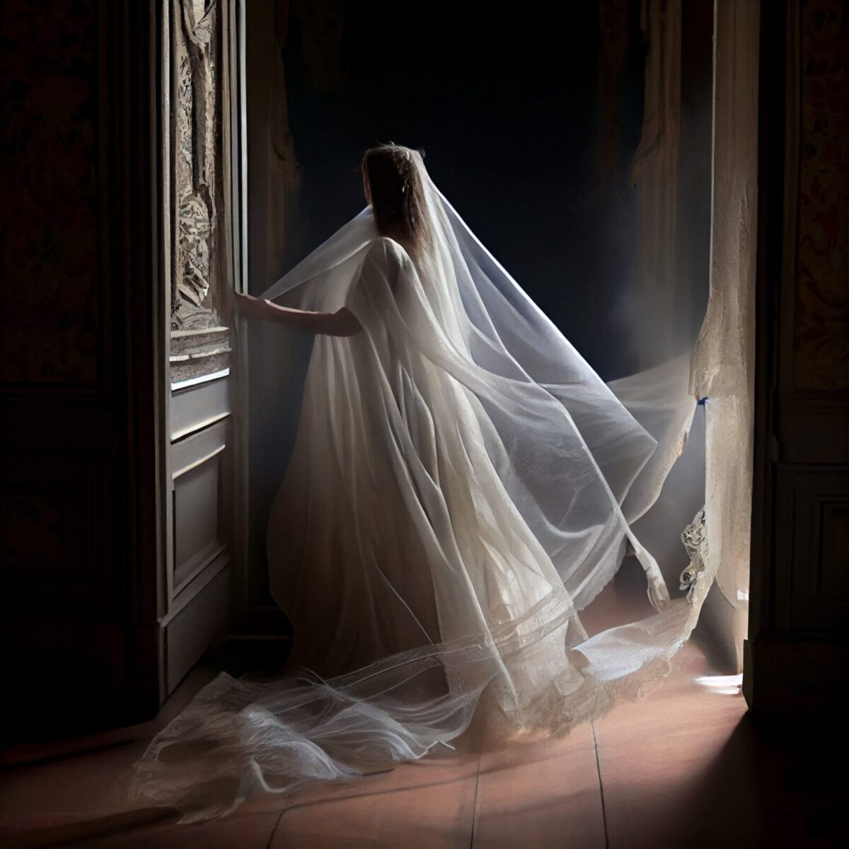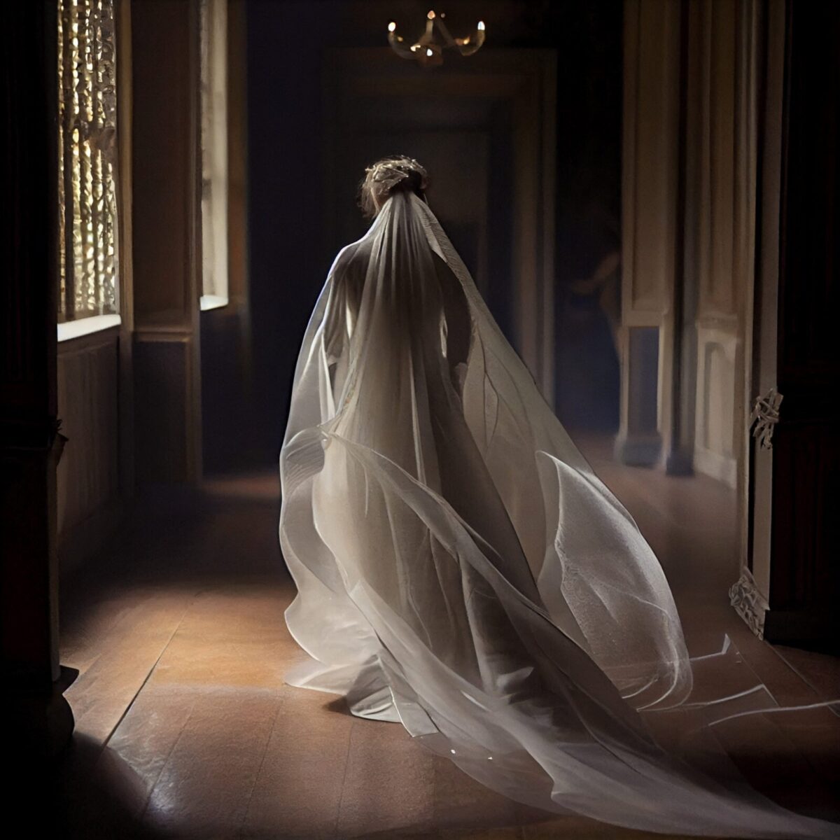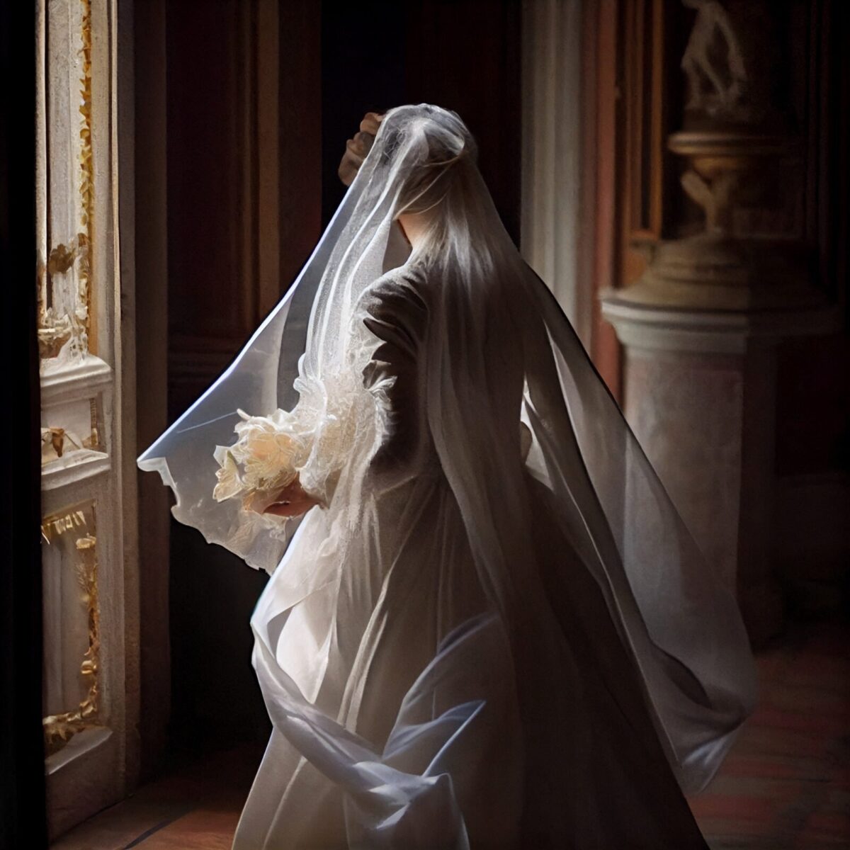 Le voile était si léger qu’il semblait flotter dans les airs, comme s’il était porté par des ailes d’anges. Il était si transparent qu’il laissait passer la lumière, mais si opaque qu’il cachait le visage de la mariée, laissant planer un mystère sur sa beauté.