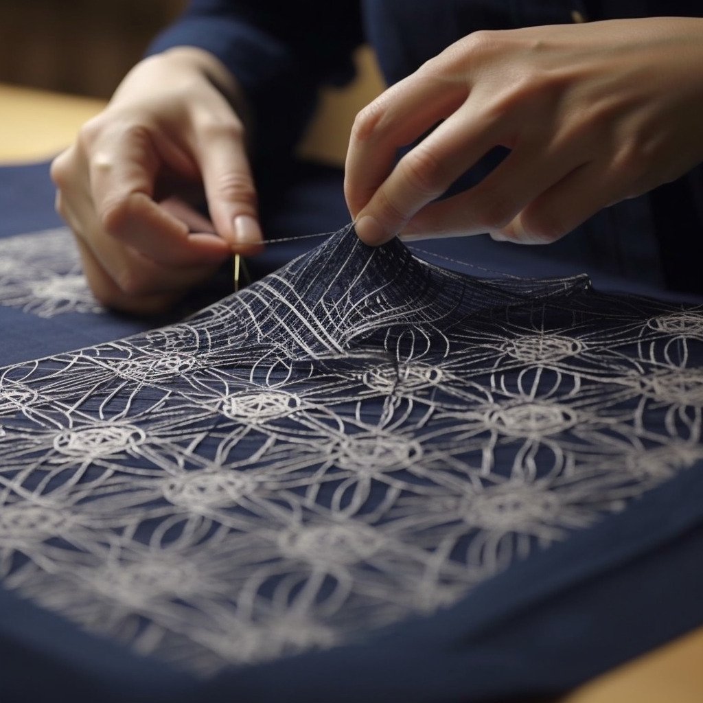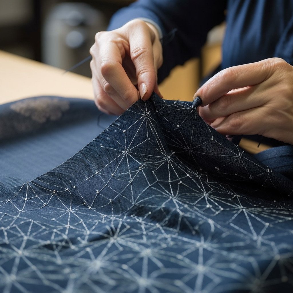 Pour réaliser une couture Sashiko, il est important de maintenir une tension constante sur le fil, de manière à ce que les points soient uniformes et que le tissu ne se déforme pas. Il est également essentiel de respecter les espaces entre les points et les lignes pour créer un motif harmonieux et équilibré.