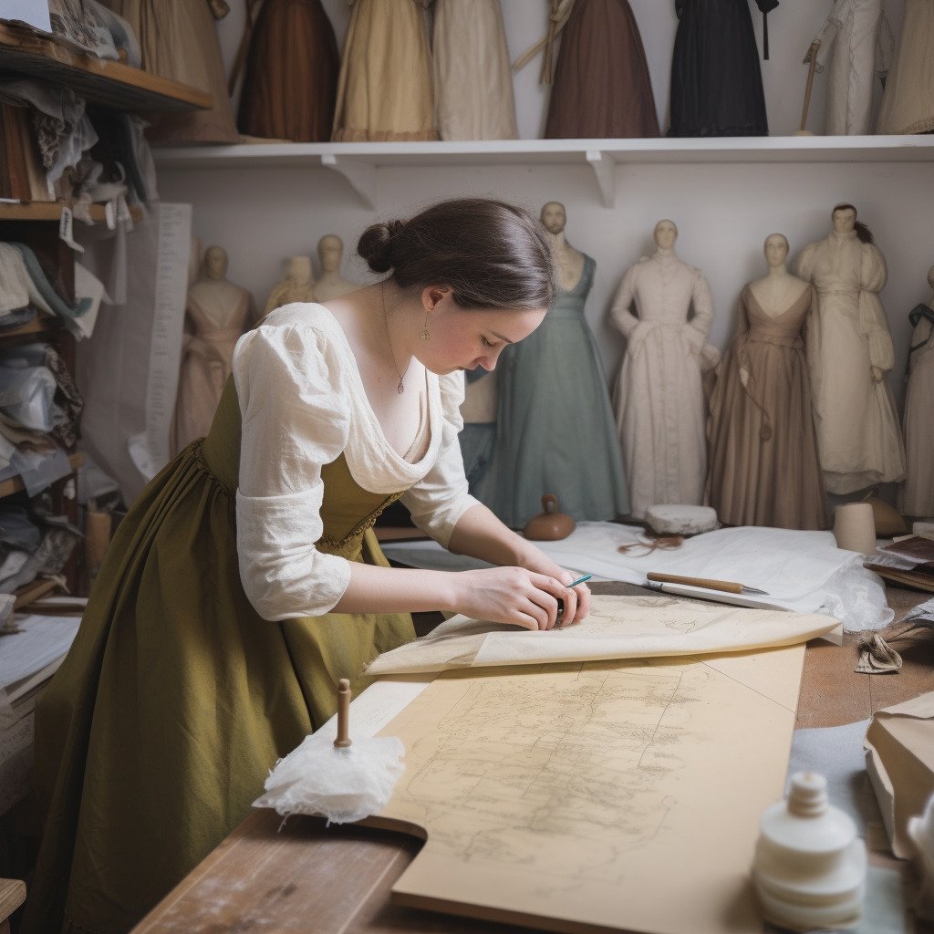 La création de patrons sur mesure est une étape cruciale dans la réalisation de vêtements historiques. Les costumiers doivent prendre en compte les spécificités des silhouettes de chaque époque, ainsi que les contraintes liées aux tissus et aux techniques de couture disponibles. Ils doivent également adapter les patrons aux mensurations des acteurs ou des mannequins qui porteront les costumes, tout en veillant à préserver l’authenticité du rendu final.