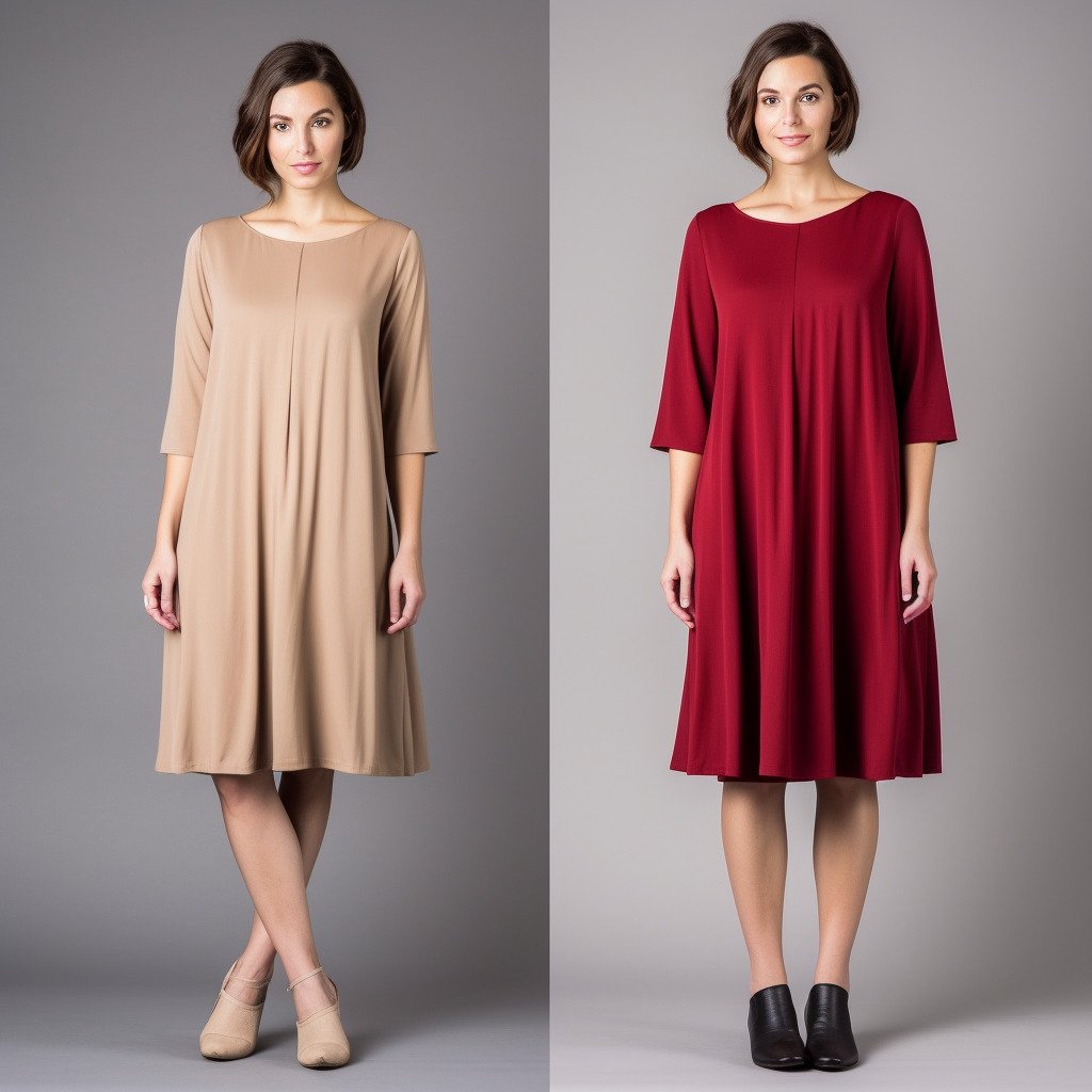 Robe trapèze mi-longue: Les robes trapèze mi-longues peuvent être confectionnées dans une variété de tissus, tels que le coton, le lin, la soie, la mousseline de soie, le polyester et le satin. Le choix du tissu dépendra de l’occasion et de la saison. Les tissus légers et fluides, comme la mousseline de soie et le satin, sont parfaits pour les événements formels et les mariages, tandis que les tissus plus épais et structurés, comme le coton et le lin, conviennent mieux aux occasions décontractées. Les robes trapèze se déclinent dans une variété de couleurs et de motifs, allant des teintes unies aux imprimés floraux, géométriques et abstraits.