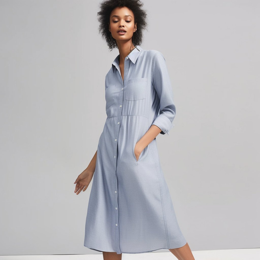 Robe chemise mi-longue: Les robes chemises mi-longues sont généralement confectionnées dans des tissus légers et respirants, tels que le coton, le lin, la soie, la viscose et le chambray. Ces tissus permettent à la robe d’avoir un tombé fluide et décontracté, tout en restant confortable et élégante. Les robes chemises peuvent également être réalisées en denim ou en velours côtelé pour un look plus décontracté et tendance. Les couleurs et les motifs varient, allant des teintes unies aux imprimés floraux, aux carreaux, aux rayures et aux motifs géométriques.