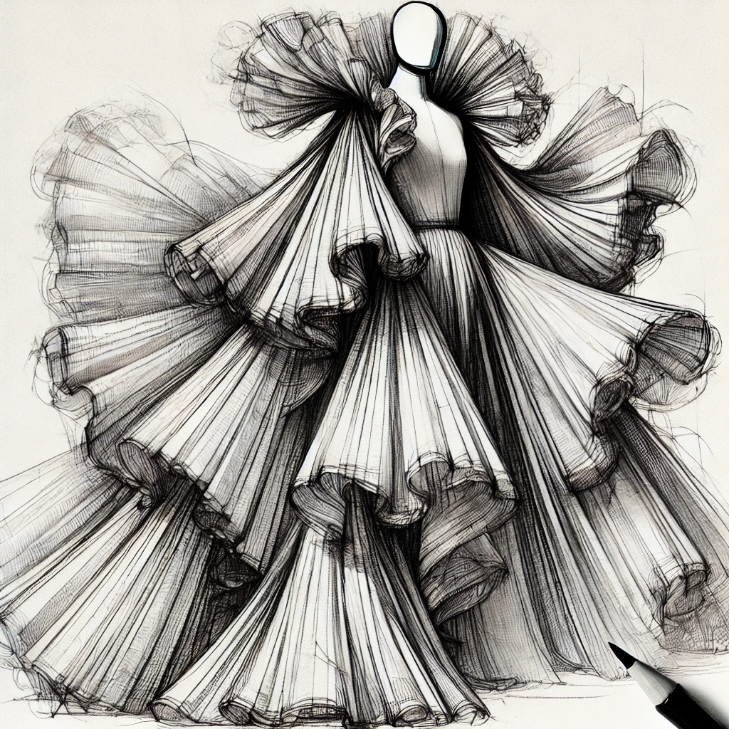 Ajouter du volume à certaines parties du vêtement peut créer des silhouettes dramatiques. Cela peut être réalisé en utilisant des supports comme le crin, le tulle ou des structures internes.
