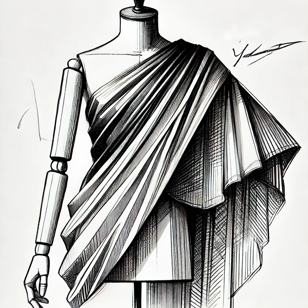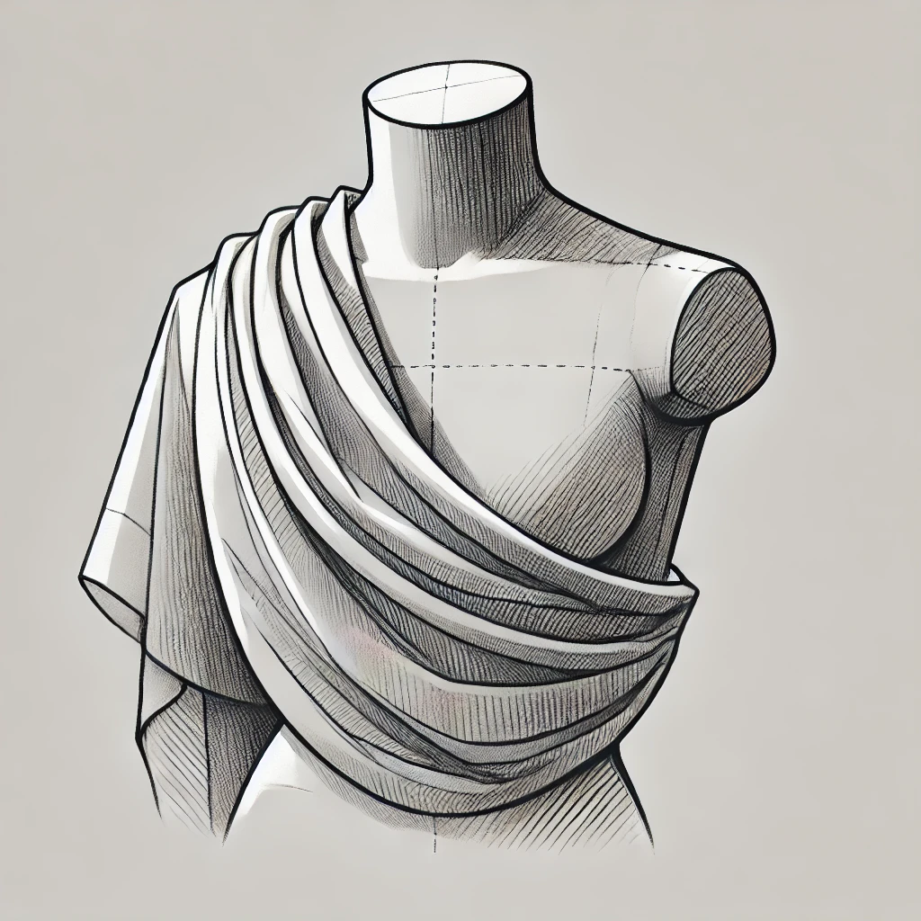 - Fixation sur le mannequin : Commencez par épingler au niveau des épaules, puis laissez le tissu tomber naturellement, ajustant les plis pour obtenir l’effet désiré.