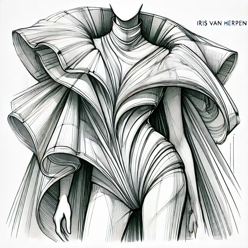 Iris van Herpen est célèbre pour ses créations futuristes qui combinent mode et technologie. Elle utilise des techniques comme l’impression 3D et l’intégration de structures internes complexes pour créer des pièces qui ressemblent à des sculptures portables.